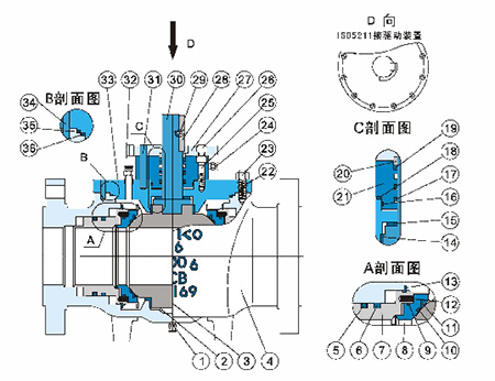 8、手動上裝式球閥采用高強度整體式球桿結(jié)構(gòu),確保了球體的精確定位;