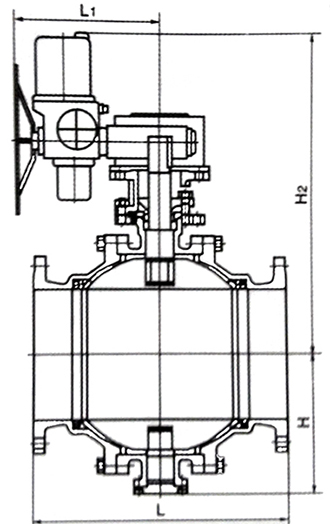 PN1.6MPa下的電動固定球閥外形尺寸
