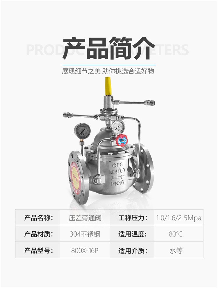 不銹鋼壓差旁通閥800X-16P 加厚閥體啟閉平穩(wěn)